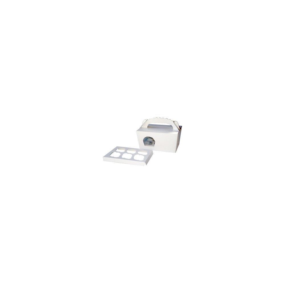 Caixa para 6 mini cupcakes, com visor lateral.