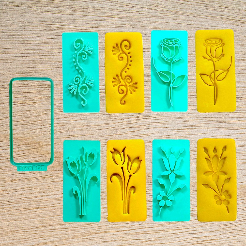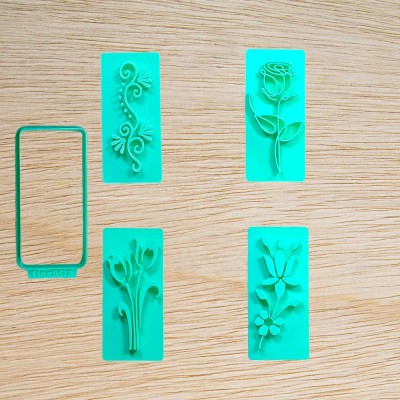 Conteúdo: 1 peça cortadora e 4 marcadores temáticos floral